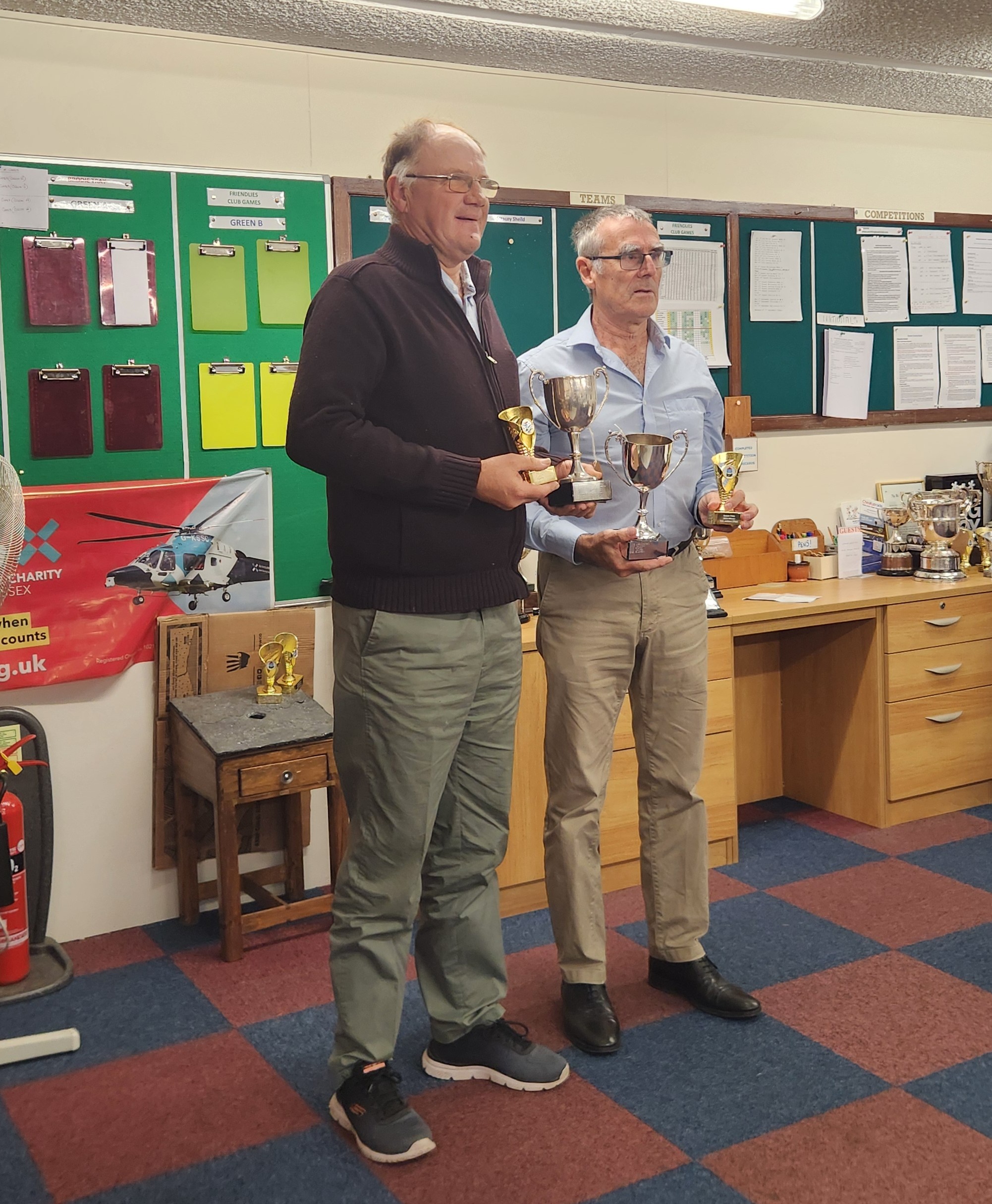 This evening we held our annual Presentation Event. We had a bit of a change this year and decided to hold it in our Clubhouse in an effort to make some money for the club- Maureen offered to organise a buffet and Wendy donned her barmaids hat and worked the bar. Everyone enjoyed the evening and food, and we put a couple of hundred pounds over the bar. Special thanks to Dave Sargent in his first year as Competition Secretary- well done considering the problems you had with people leaving their games until the last minute and wanting exemptions to play after the cut off day- this caused problems with team selection as members weren’t available for matches. Maybe in 2026 we could all be like Owen Prior- organise all of your competitions by the middle of June!